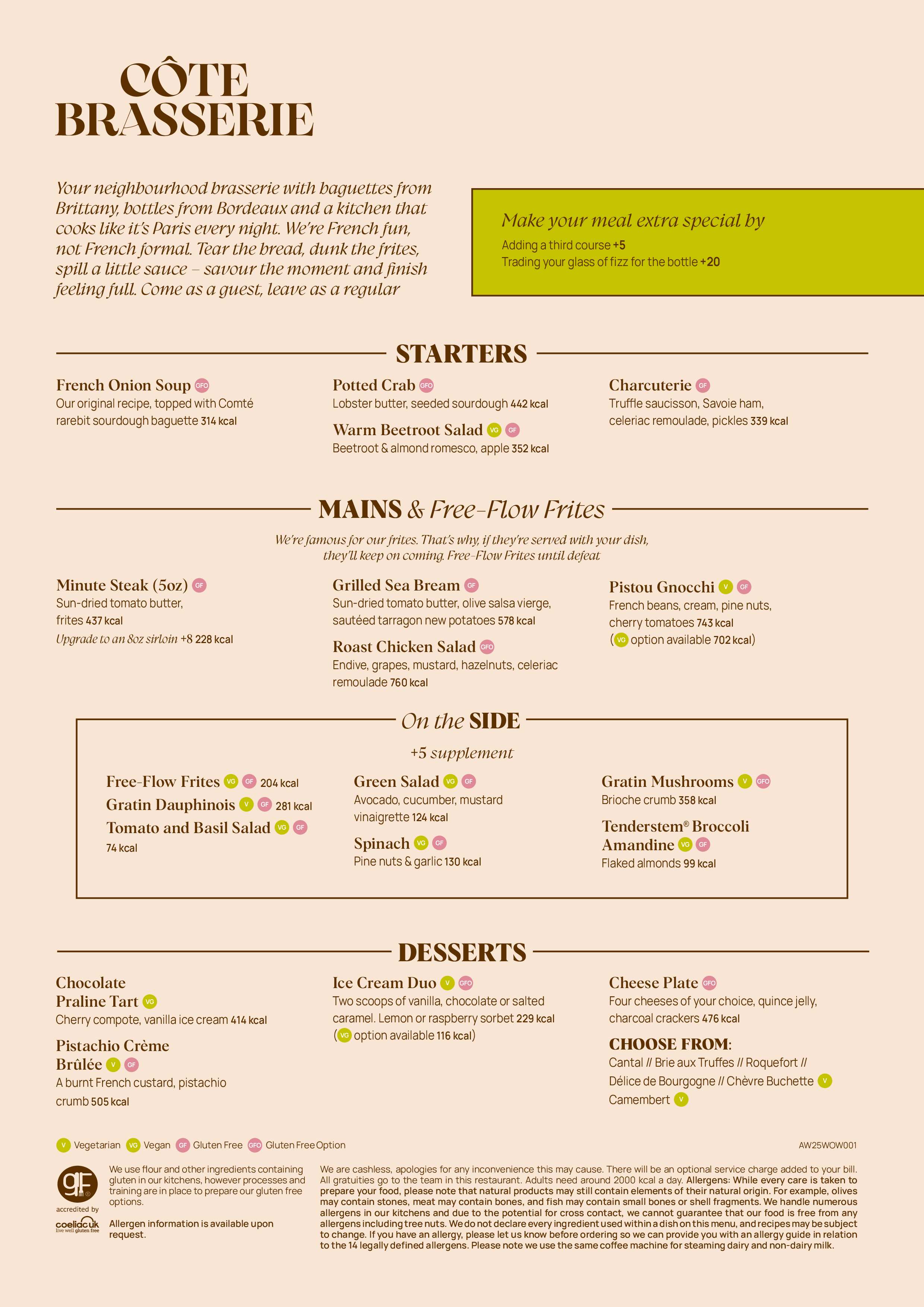 - Group Dining: Designed for flexibility, this Côte Brasserie offer welcomes groups of 2–6.